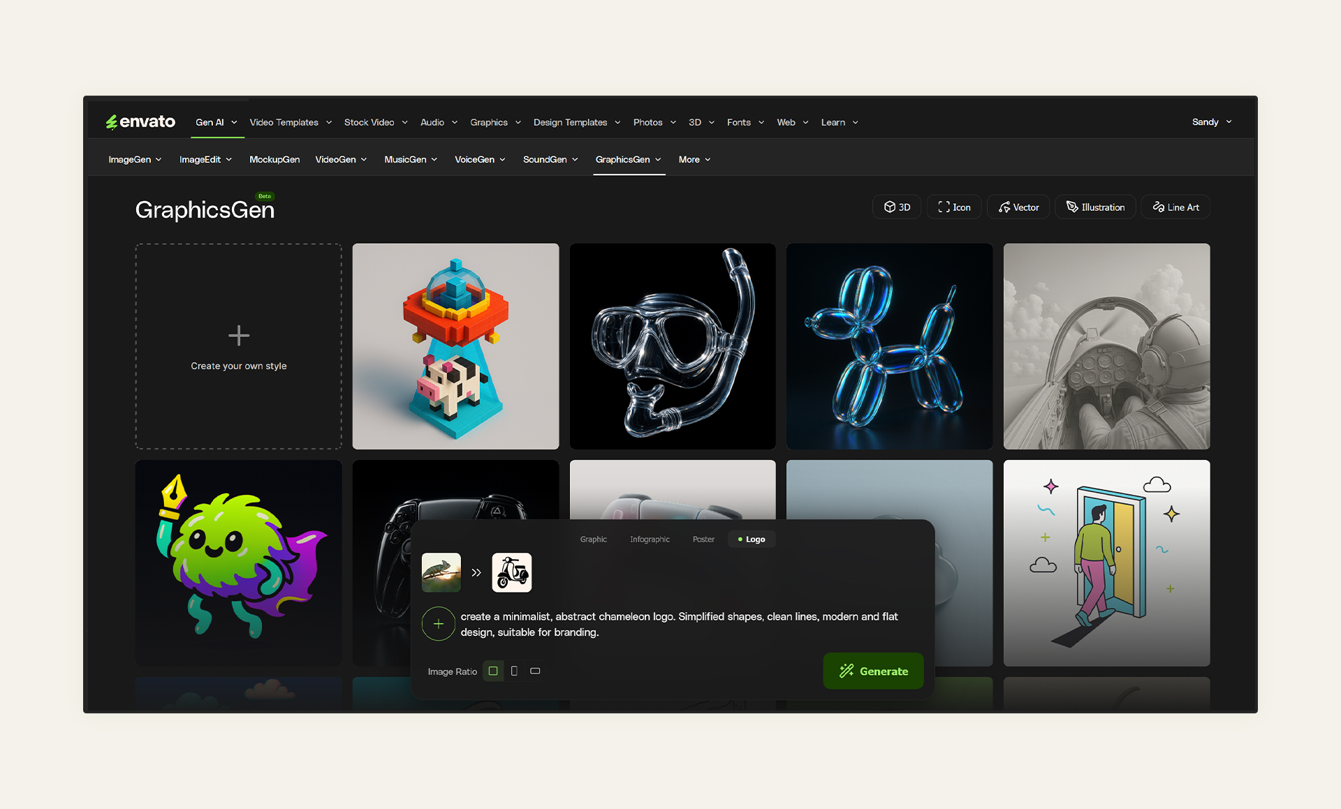Envato KI-Gen ist direkt in Envato Elements integriert und ermöglicht das automatische Erstellen individueller Assets – von Bildern und Videos bis zu Illustrationen oder Mockups. Wer nicht nur fertige Vorlagen nutzen will, kann stattdessen kreativ werden und Inhalte per KI generieren lassen. Die Nutzung ist dabei an ein aktives Abonnement gebunden: Envato Elements bietet unterschiedliche Zahlungspläne – von monatlichen bis zu jährlichen Abos sowie Optionen für Einzelpersonen, Teams oder Firmen.