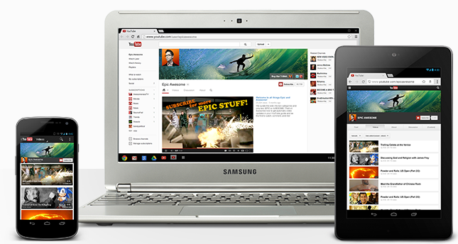 Die neuen Kanäle sind ab sofort mit einem großen Titelbild (empfohlen werden 2560 x 1440 Pixel) ausgestattet, welches bisher lediglich Brand Channels vorbehalten war. In diesem Bild kann ab sofort, so wie auf Facebook oder Google+, durch die Verwendung des firmeneigenen Corporate Designs das Aussehen des Kanals individuell angepasst werden. Das neue Design ist aber nicht nur schick, sondern auch geräteübergreifend raffiniert! Das Titelbild erscheint nämlich nicht nur, wenn man sich den Channel auf einem Computer ansieht, sondern – angepasst in der Größe – auch wenn man YouTube auf Mobiltelefon, Tablet oder Fernseher nutzt.