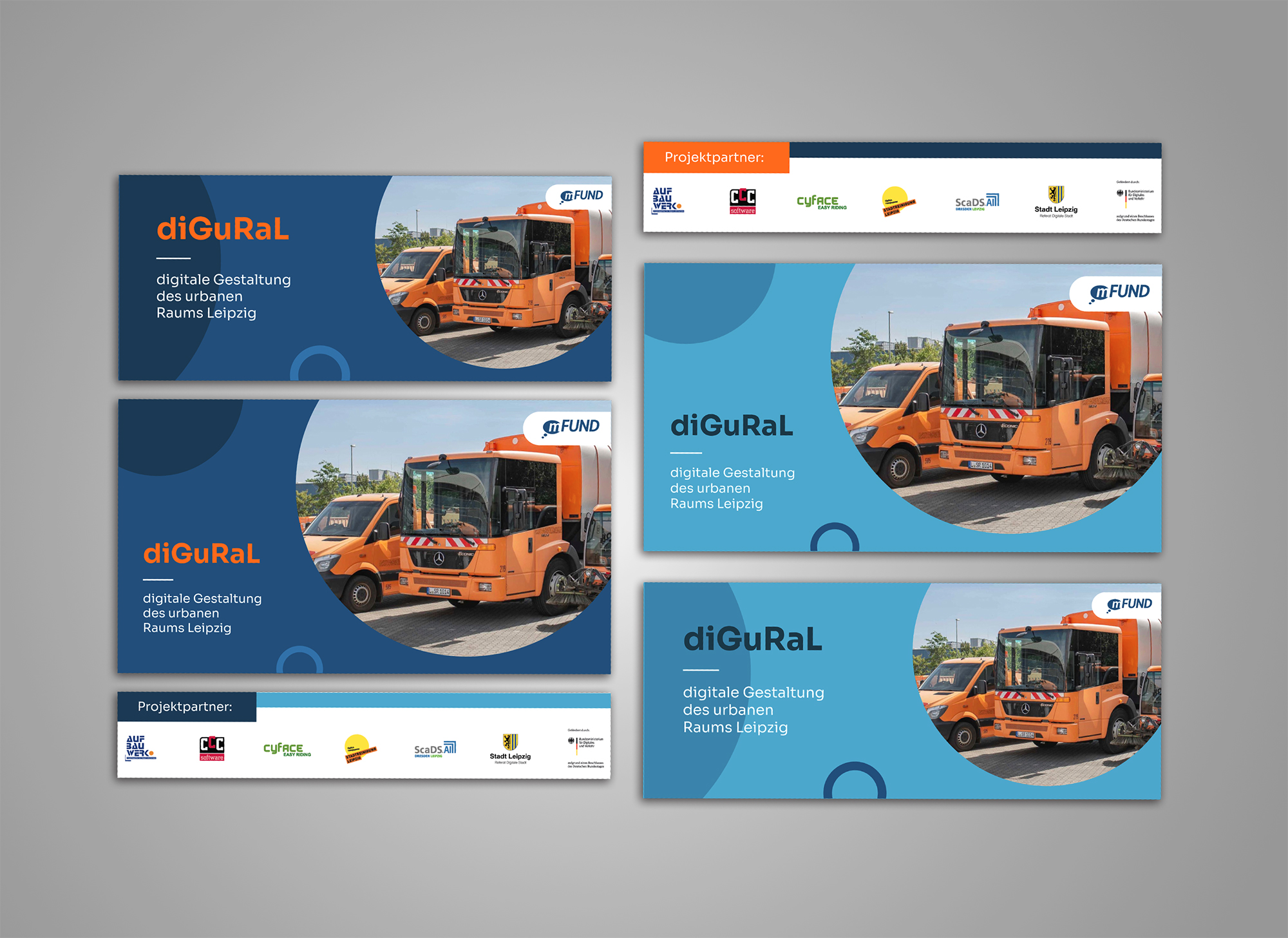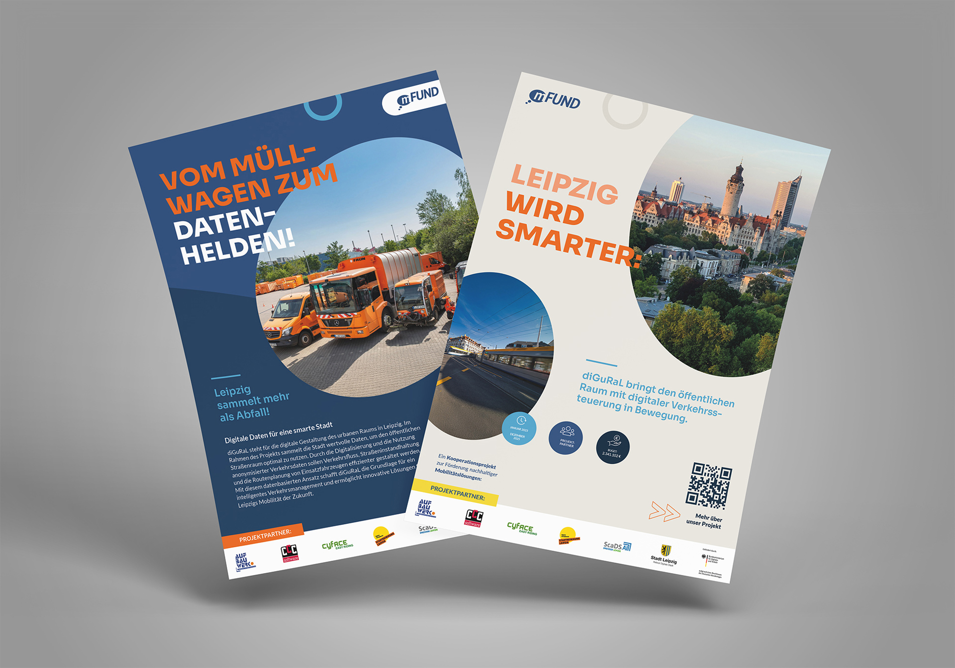 Für das zukunftsweisende Projekt diGuRaL – Digitale Gestaltung des urbanen Raums Leipzigs, gefördert durch das mFUND-Programm des BMVI, wurde durch uns die visuelle Identität entwickelt und das Corporate Design gestaltet. Ziel des Projekts war es, den öffentlichen Raum Leipzigs durch digitale Daten und intelligente Systeme besser zu verstehen und die Stadtplanung nachhaltig zu steuern.