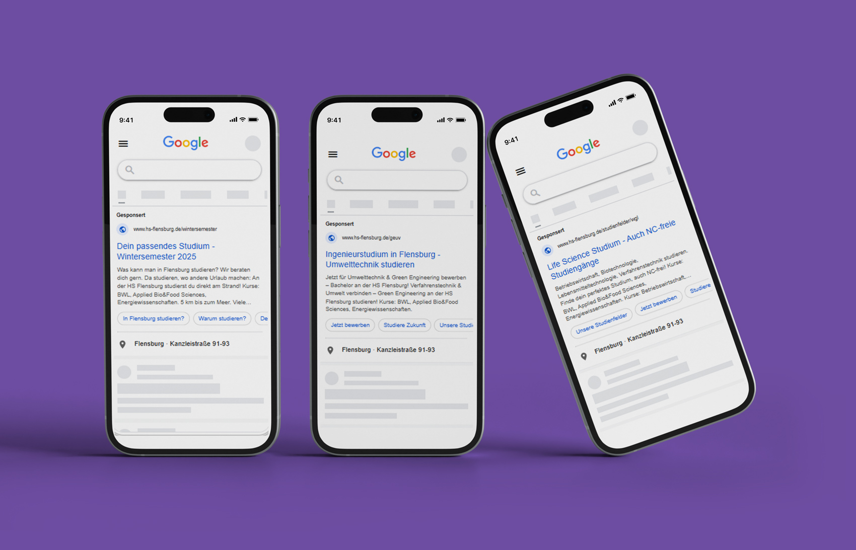 Für die Bewerbungsphasen unterstützen wir die HS Flensburg mit Kampagnen auf zahlreichen, essenziellen Plattformen.